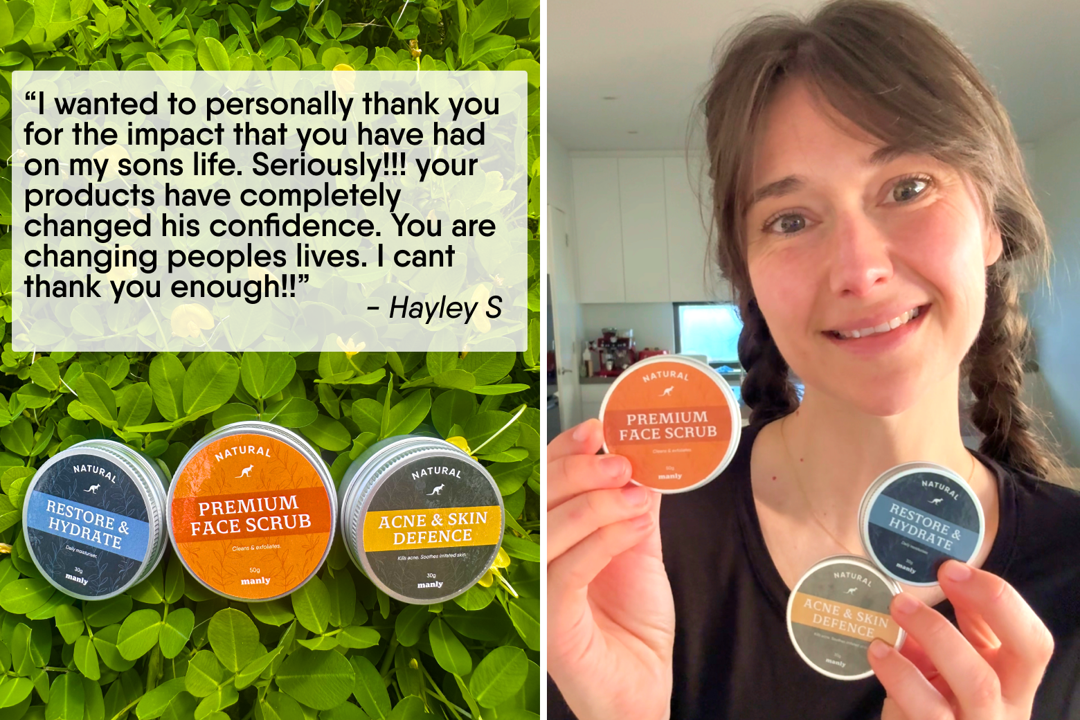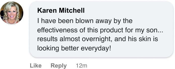 "My boys skin looks AMAZING! we tried EVERYTHING and none of it worked. His skin hasn't looked this clear since he started puberty, THANK YOU FOR MAKING THIS!"