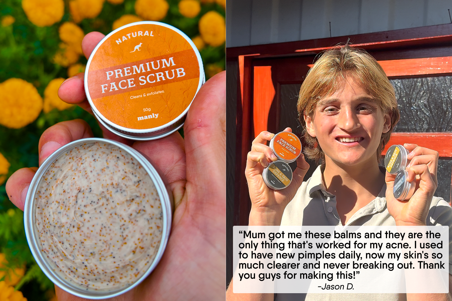 Manly is unlike anything you have ever seen or felt. Look at the products. Pure plant extract and arctic beeswax mixed together purely to take care of your acne once and for all. No cheap fillers or BS. Look at our reviews. No brands have reviews like us. We have helped 500,000+ REAL people.