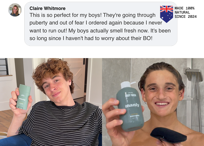 Manly is unlike anything you have ever seen or used. Pure Australian plant extracts mixed together purely to take care of teenage body odor once and for all.