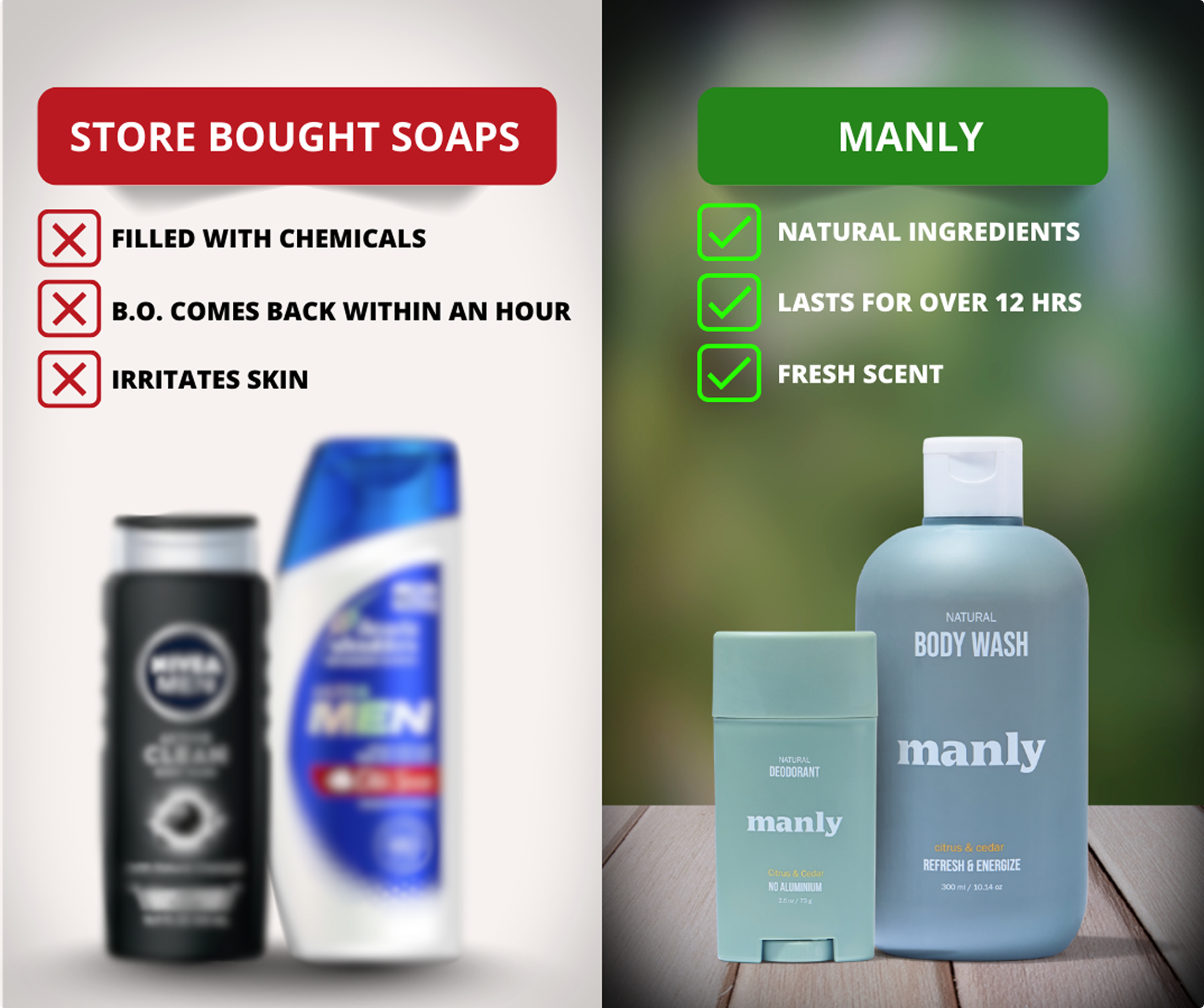 Manly created the perfect soaps that work with your son's body instead of against it. The combination of natural and gentle skin-conditioning ingredients are essential to keep him smelling fresh, soothing irritated skin, and boosting his confidence.